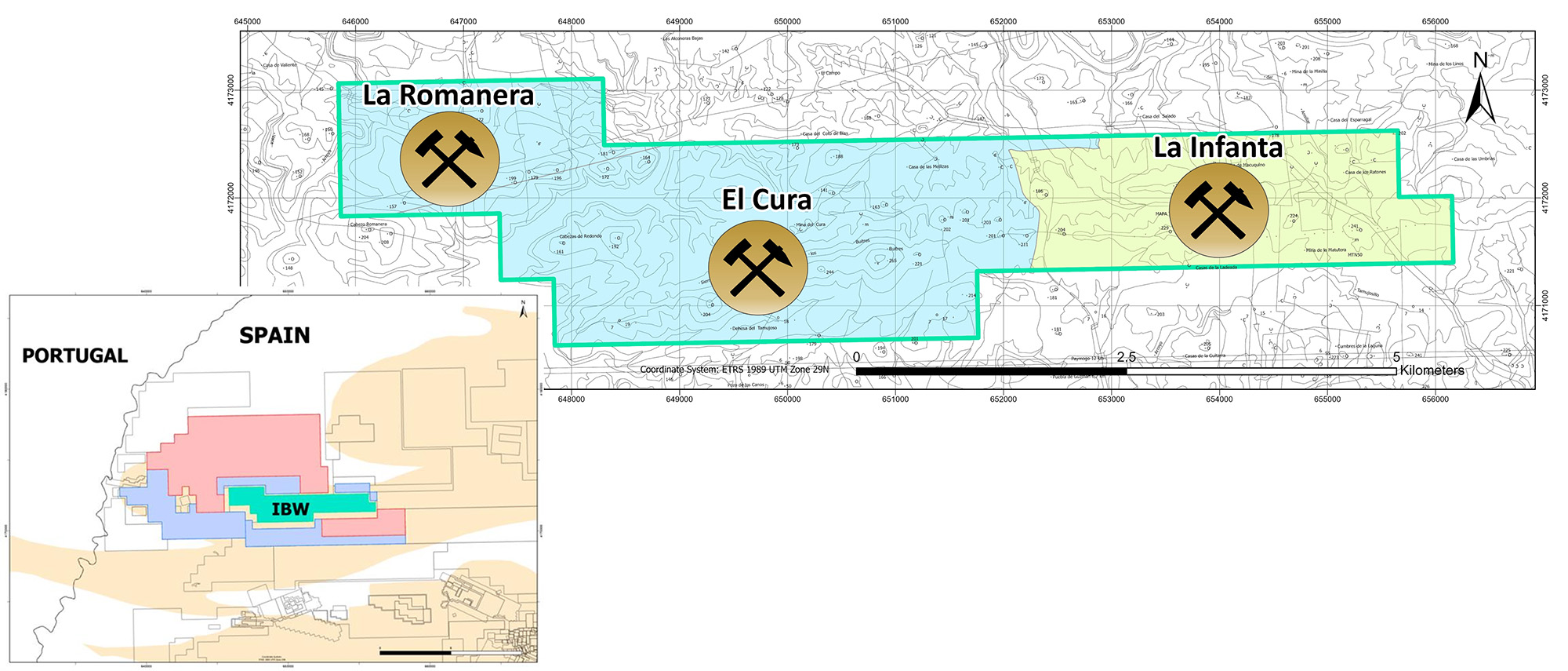 Figure 1. IBW tenement and locations of La Romanera, El Cura and La Infanta deposits.
